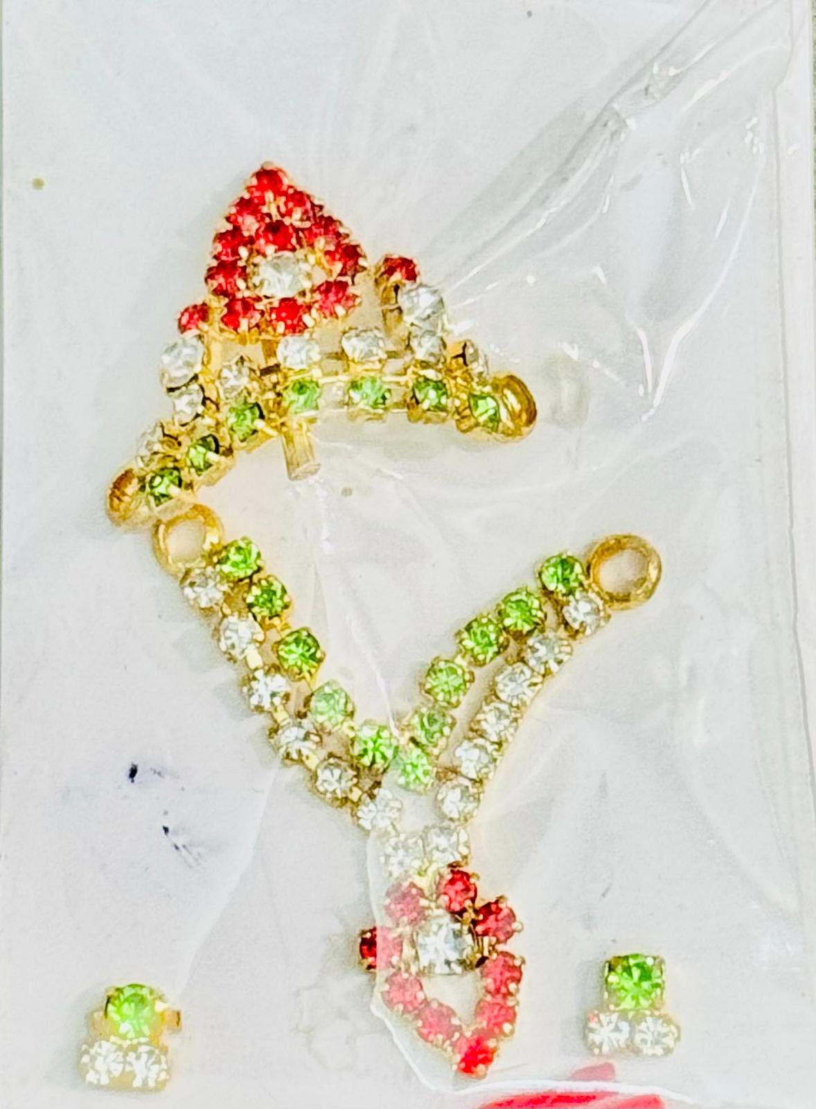 Add vibrant charm to your Laddu Gopal’s look with this tri-color accessory set featuring a striking red, green, and white stone mukut paired with a beautifully matching mala. Comes with complementing earrings for a complete festive look.