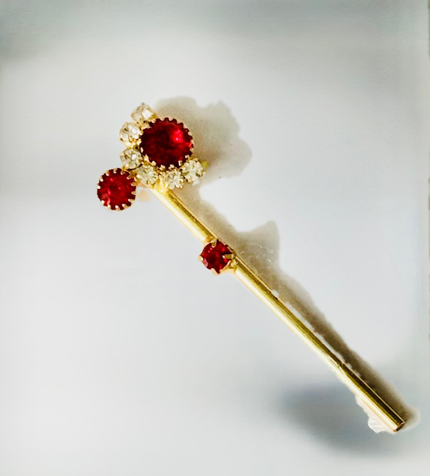 A beautifully crafted miniature flute designed especially for Laddu Gopal idols. This elegant piece features a shiny golden finish, adorned with deep red gemstones and delicate white stone embellishments. Perfect for adding a divine and festive charm to your deity’s appearance during daily darshan or special pujas.