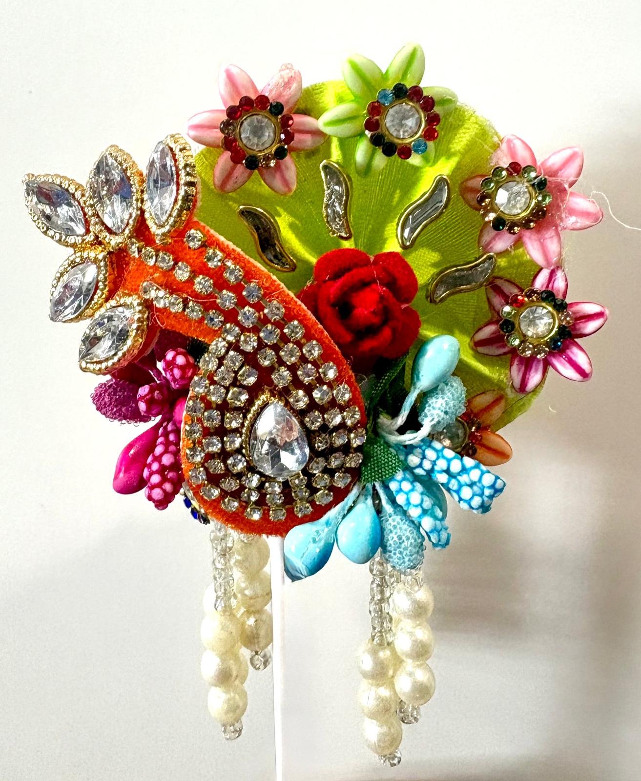 A Signature Collection masterpiece for Laddu Gopal — intricately handcrafted with colorful floral accents, lustrous pearl drops, and royal stone detailing. A crown worthy of divine elegance.